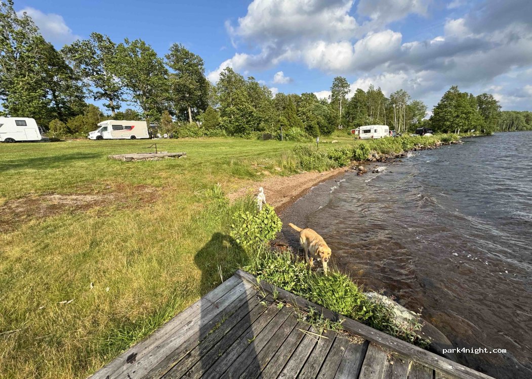 Sehr schöner Platz direkt am Wasser. Es stehen ein paar Stühle und Tische auf einem Steg, so dass man hier perfekt den Sonnenuntergang genießen kann. 200 SEK inkl Strom. 150 SEK ohne Strom. Ruderboot kann gemietet werden. Einen Stern Abzug für das Plumpsklo welches leider nicht sehr sauber ist. Ansonsten sehr zu empfehlen.