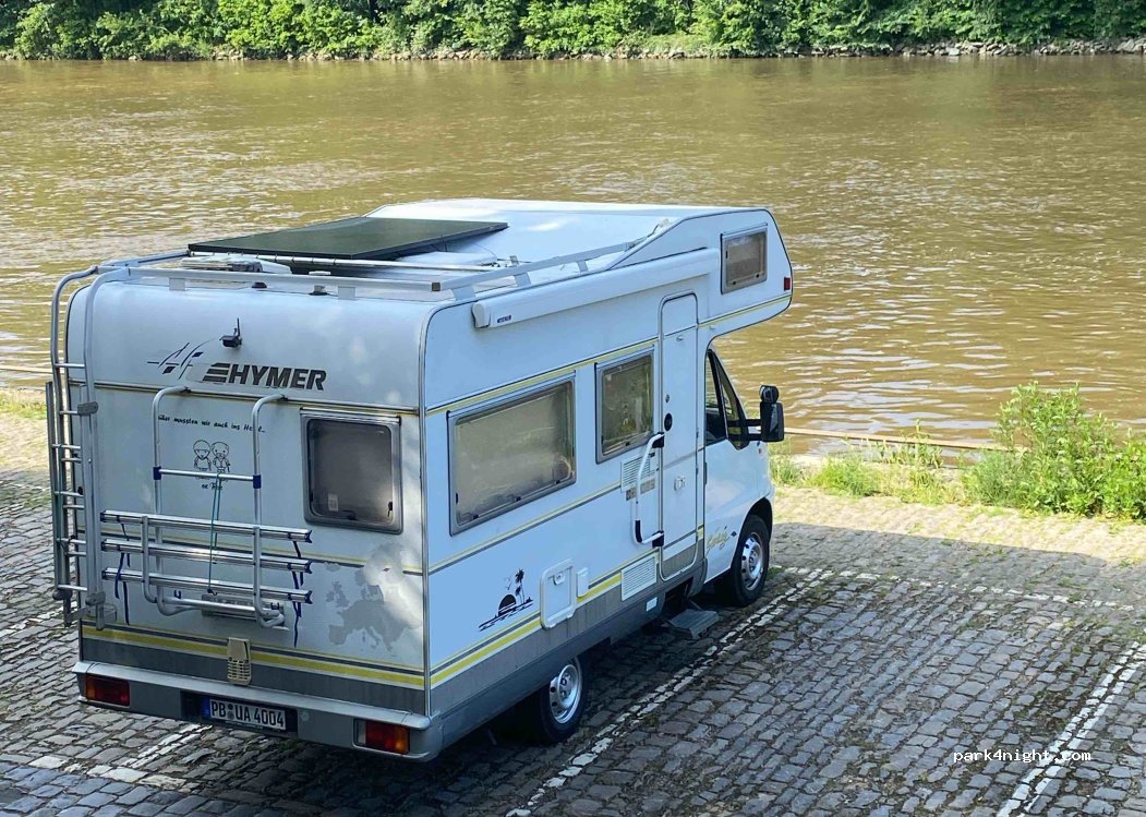 Kostenloser Parkplatz direkt am Main. Sehr eng, aber mit einem kleinen Camper gut zu rangieren.