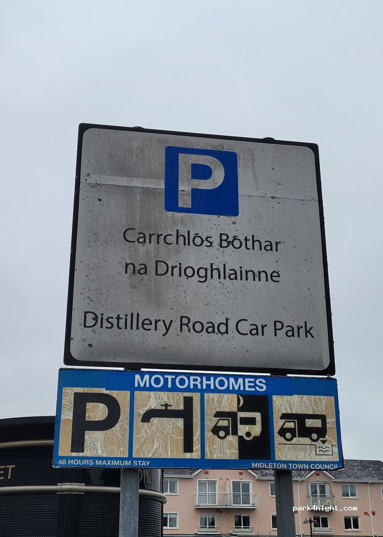 Perfect parking after the Midleton distillery experience! Running water next to toilet. Toilets 0,25 eur. Quiet at night. At the evening the police car drove by, just to check on us if we are okay ;)