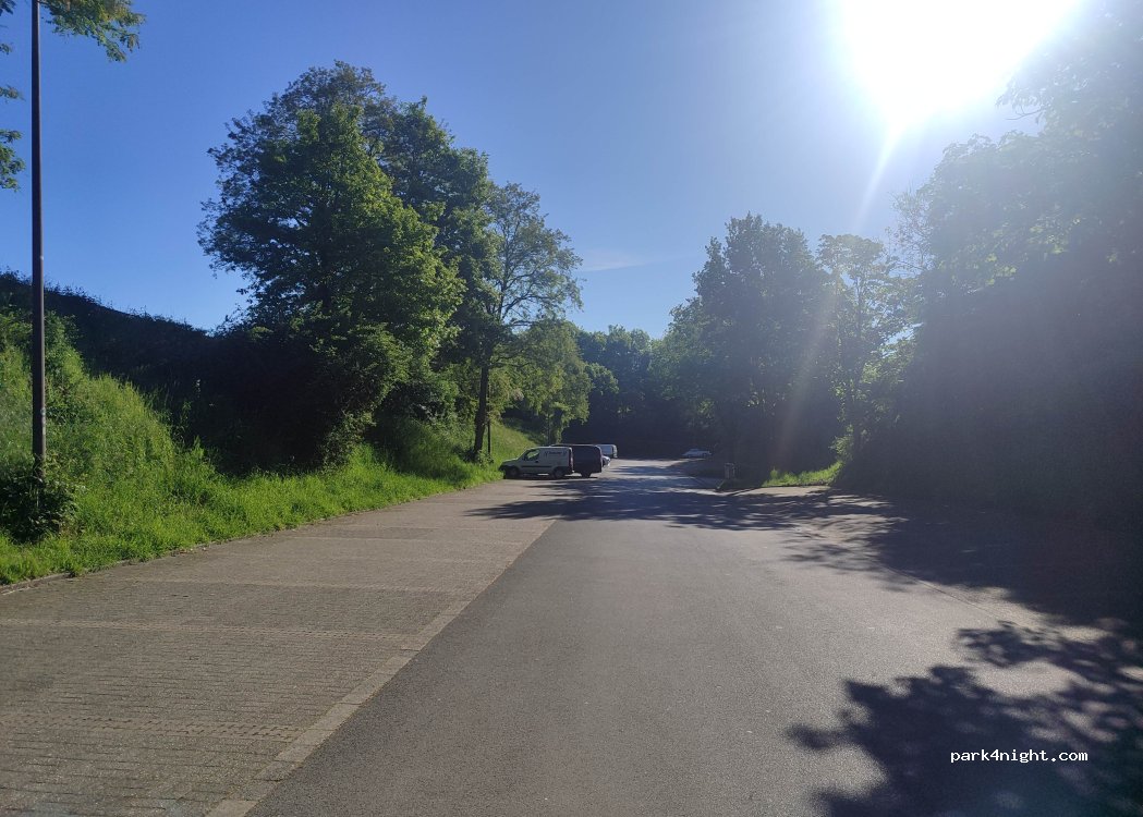 Großer, betonierter Parkplatz. Gut für einen Besuch auf der Hohensyburg. Offiziell nur für PKWs erlaubt, wurde aber nicht kontrolliert.