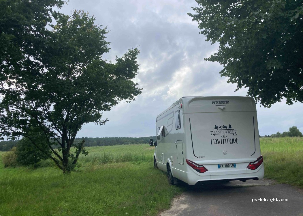 ruhige Nacht, ab und zu ist ein Auto vorbei gefahren, sonst war niemand hier. Die meisten Parkplätze sind sehr schräg, besonders die zum Wald, die zum Feld sind ok, nach dem Reinfahren auf der rechten Seite. Internet ok, morgens keinen Schatten. Sehr sauberer Platz