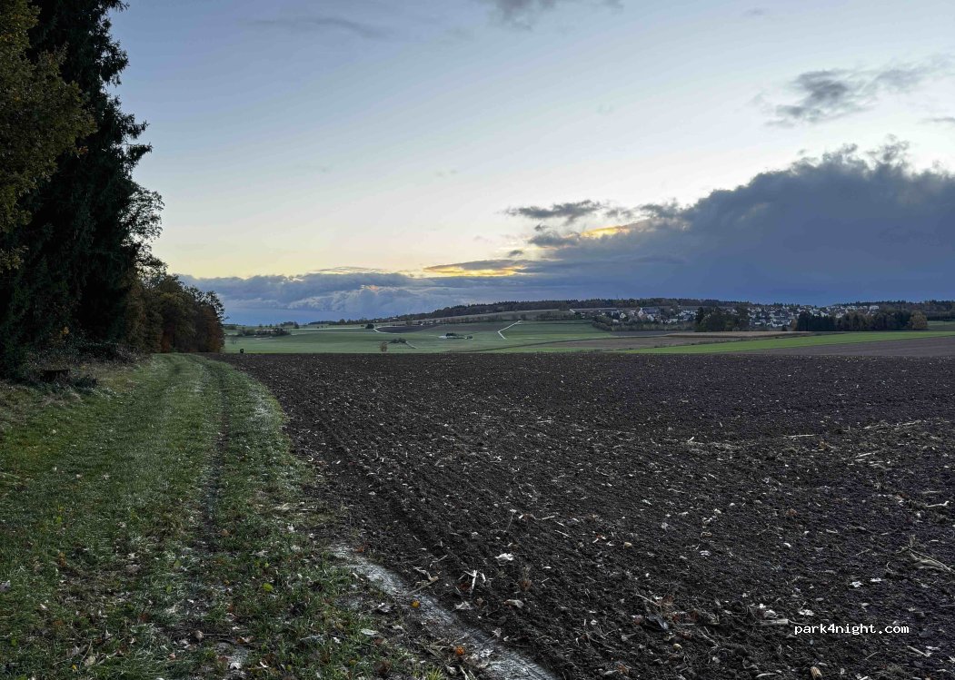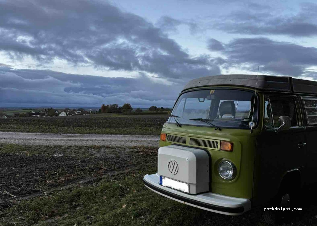 Am Waldrand auf einer Anhöhe kann mal gut am Wegesrand stehen und hat einen schönen Bild ins Tal und auf mehrere Gemeinden. Die Straße ist nicht weit aber wir haben sie nicht gehört. Eher für kleinen Autos geeignet (T5)