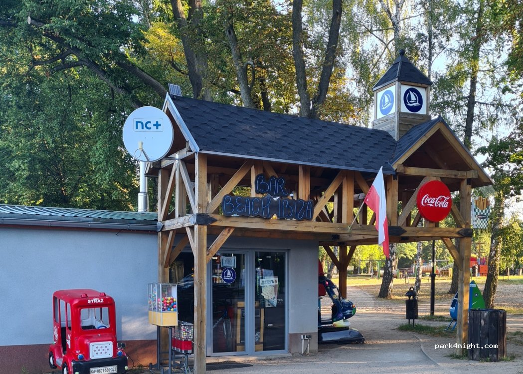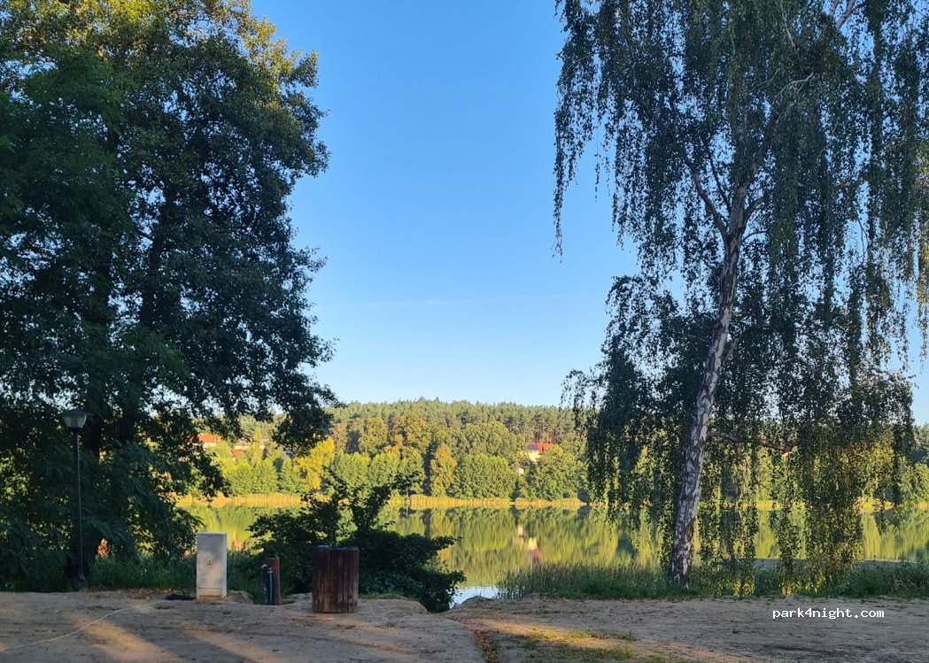 Ośno Lubuskie on the Reczynek lake. Camping by the city beach, volleyball courts, BBQ area, playground. No designated plots. Nearby a walking path around the lake. You can rent small houses. Mini bar available on site.