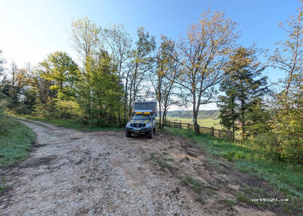 Der wahrscheinlich schönste Schlafplatz während meiner Reise durch das Departement Jura. Zufahrt mit einigen Schlaglöchern und ohne gute Wendemöglichkeiten. Für einen Caddy jedoch sehr gut machbar. Für Wohnmobile nicht geeignet! Der Ort ist sehr ruhig. Das einzige was man hier hört,sind die Glocken der Kühe im Tal auf den Weiden.Haltet den Ort bitte unbedingt sauber,damit er nicht gesperrt wird.