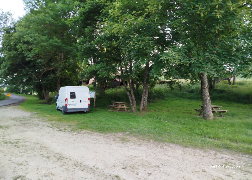 Un lieu très agréable. Du passage la journée mais très calme la nuit. Une jolie ombre pour l'été. Des tables de pique-nique en bon état. Pas de poubelles cependant, on repart avec ses ordures, merci ! Bonne réception 4G (SFR).