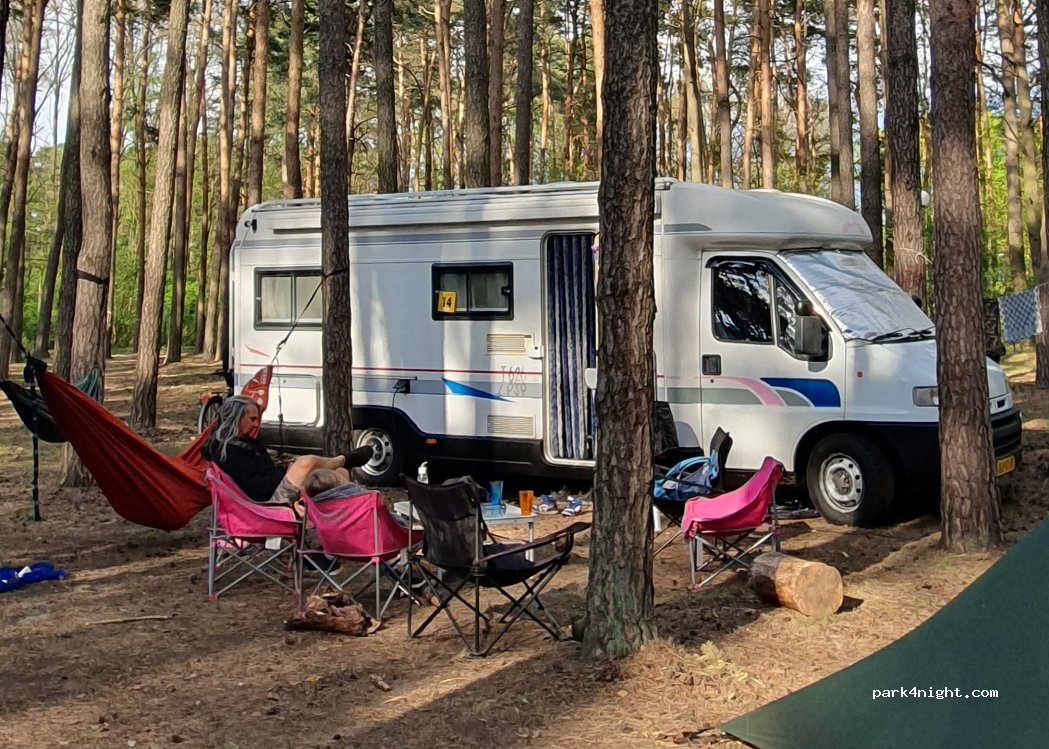 Uroczy i bezpieczny kemping położony w pięknym sosnowym lesie nieopodal jeziora z plażą. Sanitariaty są często sprzątane, gorąca woda pod prysznicami bez ograniczeń. Dostępna jest wyposażona kuchnia - lodówka, kuchenka, tostery, a także pralka. Plac zabaw oraz świetlica dla dzieciaków. Wyznaczone miejsca na ognisko z zadaszonymi wiatami. Cena chyba najniższa w Polsce - kamper + 2 osoby 65 zł!