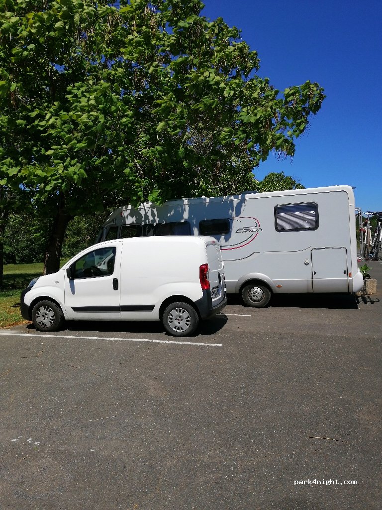 Très beau parking avec verdure tout autour. stade et jeux pour enfants a proximité. calme et au bord de l'eau. Village à découvrir. Joli petite cité de caractère.
