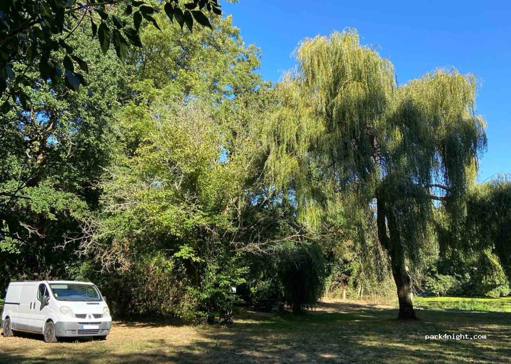 spot isolé, pleine nature, avec un beau saule pleureur. peu de passage. facilité pour faire demi tour. par contre faites attention en période de pluie intensive (de l autonome au printemps), gros risque d'embourbements... (nous en avons fait les frais).