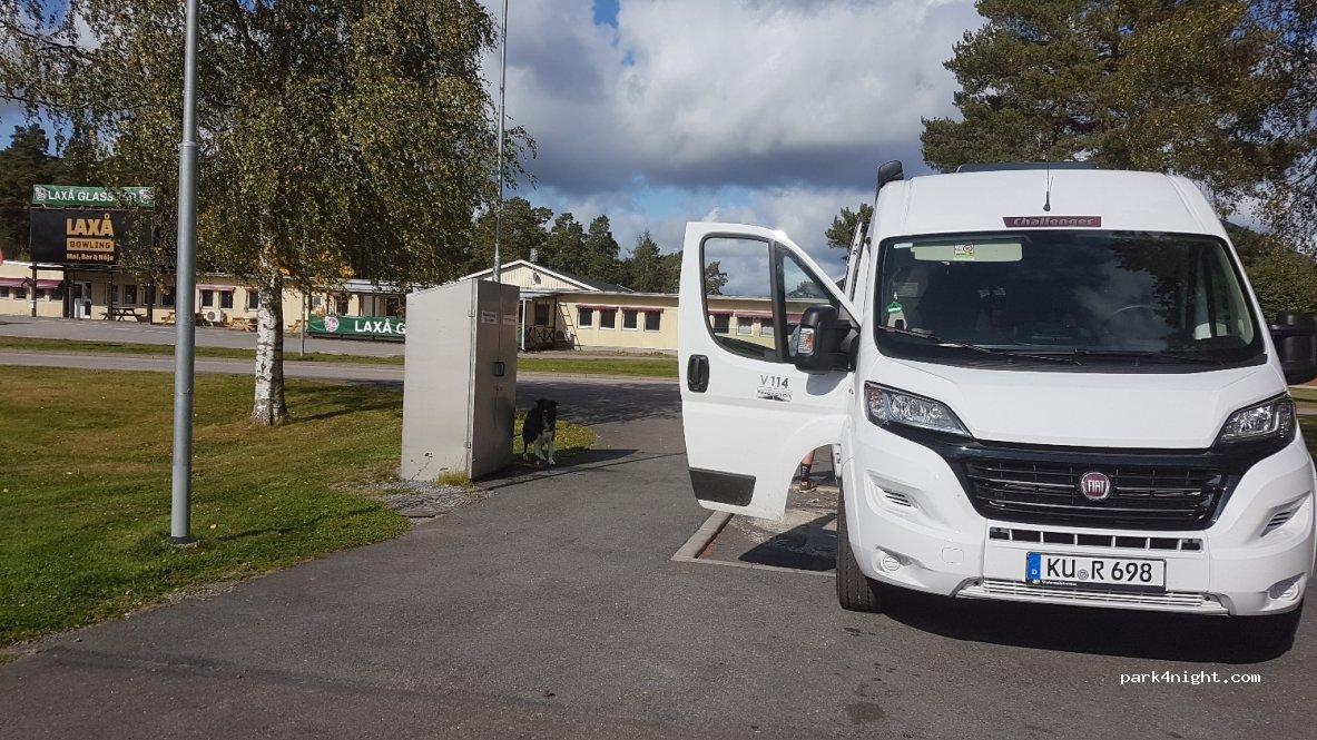 Supply and disposal, fresh water and gray water. Provided by the municipality of Laxå. Coming from the east, just turn in the parking lot from the Laxå rest area, immediately right towards the bowling / school you can see the drain grate. Closed in the cold season.