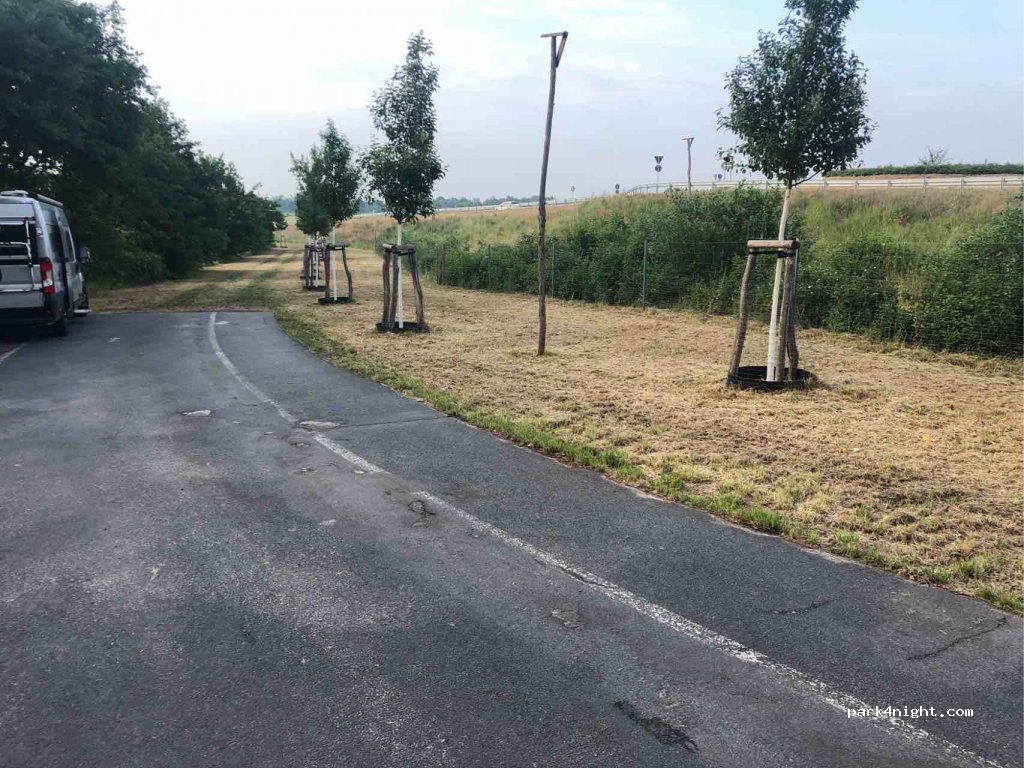 Anfahrt und Lage sehr gut, jedoch ziemlich uneben und leider nahe einer Güter-Bahn-Linie. Direkt neben einem Kreisverkehr an dem viele Lastwagen anhalten und wieder losfahren. Sehr laut.