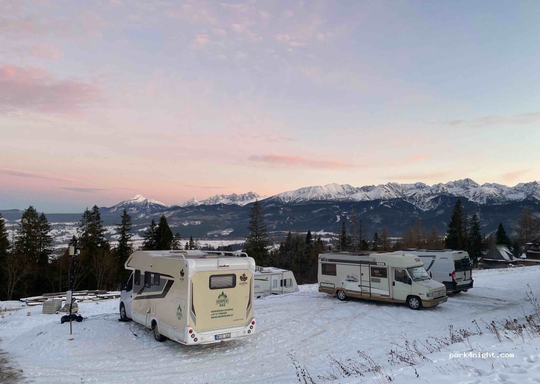 Parkplatz Gobałówka View, Zufahrt: Von Poronin Richtung Suche, Ząb, dann Furmanowa, Straße nach Gubałówka und nach der Sägewerksausfahrt zum Blauen Weg. Medien im Preis inbegriffen: Strom, Wasser 100 Liter, Grauwasserableitung, Toilettenentsorgung, Grill usw freundliche Besitzer :)
