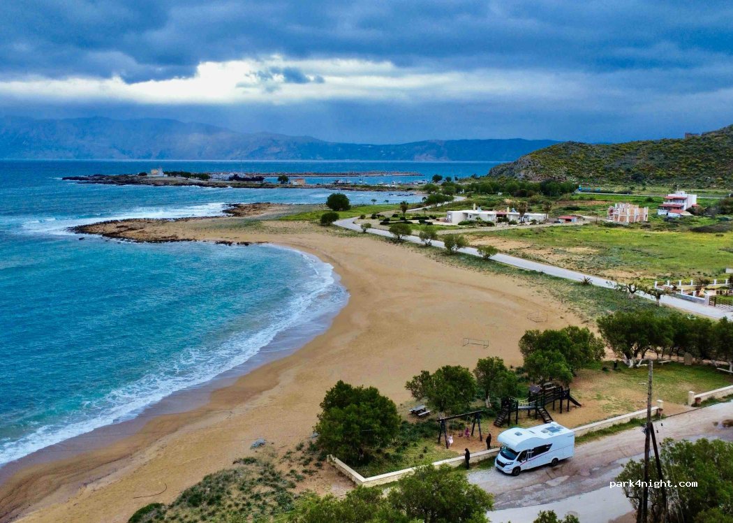 A perfect little spot which is very rare on the north coast. Stayed on two occasions for 4 nights in total. A few passing cars to the greenhouses but not much other traffic. The little beach is just perfect - sandy and no rocks once in. There’s a play park for the kids and water tap available. Keep it clean so they don’t stop us parking there!
