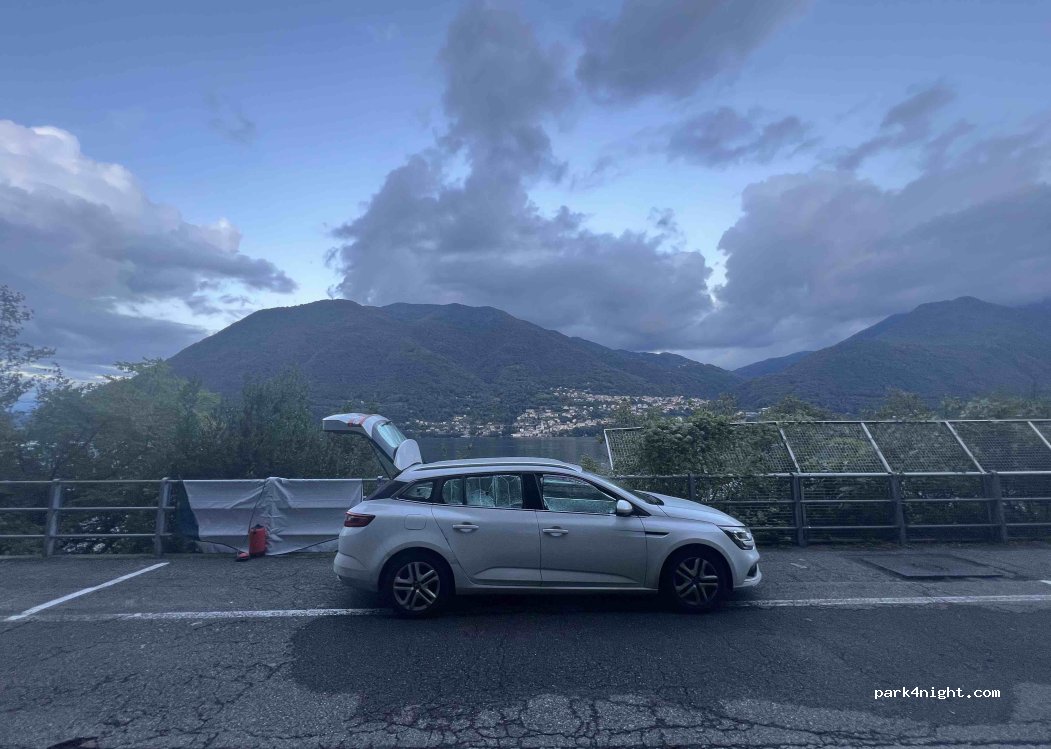Parking côté rue avec vue sur le lac, nous nous sommes arrêtés ici une nuit avant de repartir sur les conseils d'un local, nous nous sommes garés à la dernière place au bas de la route du village, très calme à part quelques voitures de temps en temps. recommandé pour un arrêt de nuit rapide. pas de services dans le parc général seulement des voitures nous vous recommandons une balade dans les rues historiques de brienno, certaines mènent au lac où vous pourrez vous baigner.
