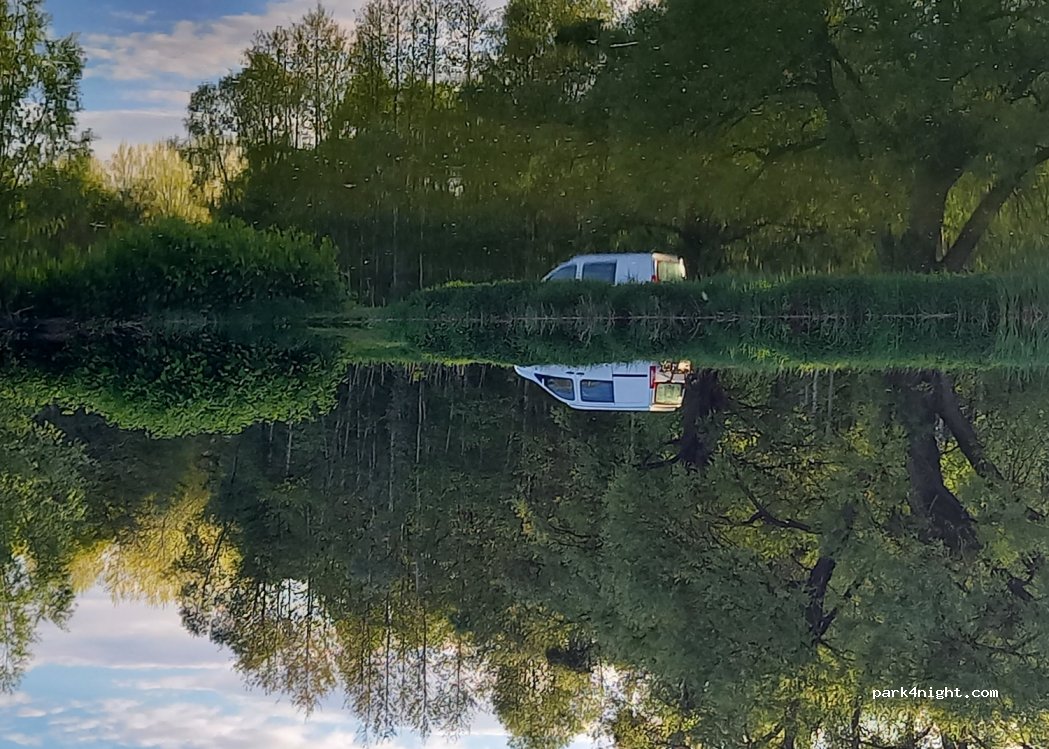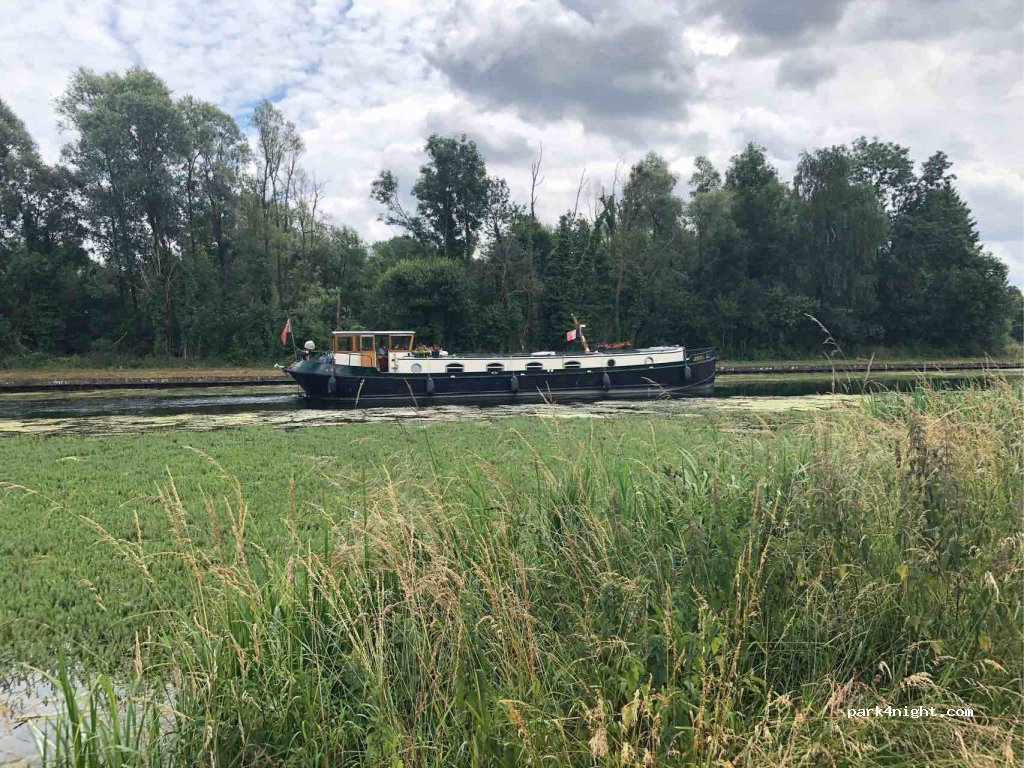 Au bord du canal ( zone de pêche de nuit) stationnement toléré.... peu de pêcheurs finalement... supérette dans le village voisin (3km) avec tout ce qu'il faut.... boulangerie Etc... aucun service... faut être autonome... mais vraiment tranquille....
