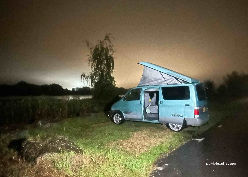 A nice quite spot next to a lake an old gravel pit cost £5.40 for 24 hrs arrived at night while it was raining only camper there. no problems