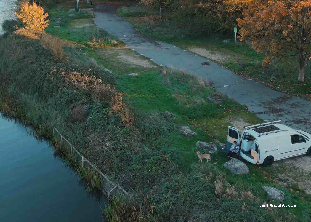 Fab little car park with a great view and walks around the lake. We arrived quite late in the evening and paid for 24 hours. There is also a lovely little cafe 3 mins walk away where we had a nice breakfast before leaving. Would recommend!