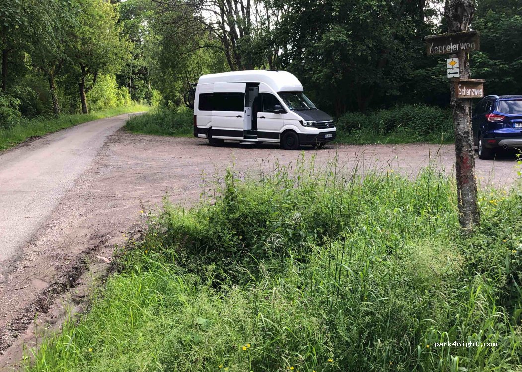 Ruhiger Wanderparkplatz im Naturschutzgebiet, etwas abschüssig und je nachdem wie man steht aber auch für eine Übernachtung gut.