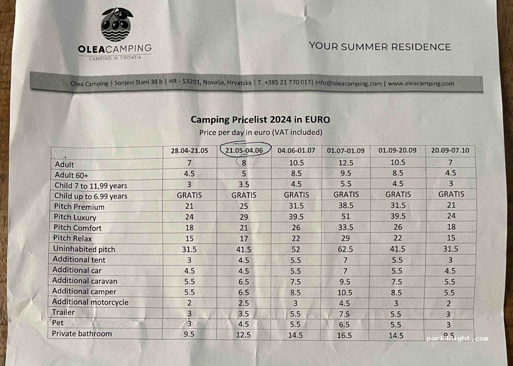 Campeggio adatto a famiglie e chi ha voglia di rilassarsi,offre tutto il necessario per una vacanza ottima,bagni puliti e molto belli,e tutti i comfort di un ottimo campeggio!solo 2 pecche ci sono,mini market quasi inesistente e si è costretti ad uscire fino a novaja quindi minimo richiesto motorino perché sono troppi km per andare in bici,ultima cosa non c’è un minimo di animazione!