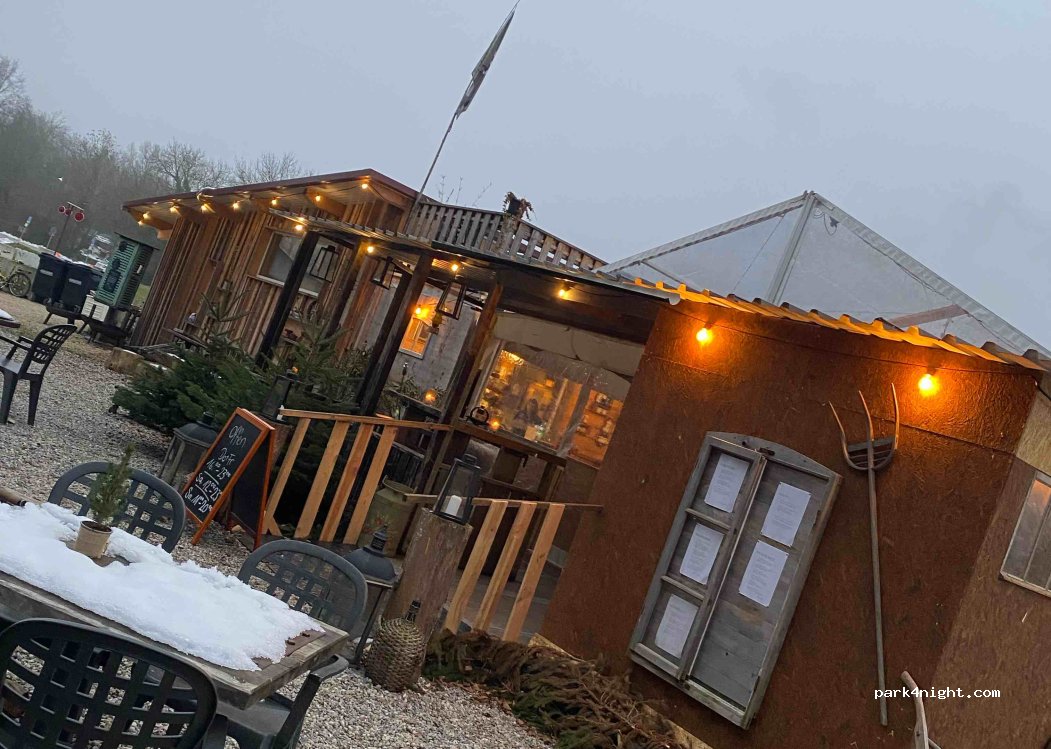 Gute Infrastruktur auf einem Kiesplatz direkt an der Aare und Veloweg. Baustelle ist noch da, aber kein Betrieb. Das erwähnte Restaurant ist nicht mehr da, somit eigentlich sehr ruhig und perfekt für die Durchreise. Die Preise sind angemessen und wer es sich nicht leisten kann/will, soll halt einfach weiterfahren.