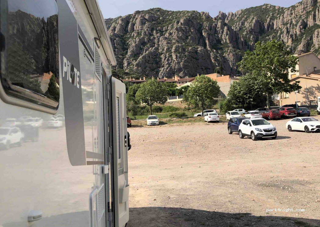 Parking de coches de tierra, sin servicios, sin sombra y un trozo de parking liso el resto con pendiente, tienes bon preu súpermercado, a un paseo y no recomiendo ir en fin de semana se llena de coches a tope con gente que va a la montaña, Barranquismo o al mercadillo que es el domingo , entre semana dicen que está muy tranquilo