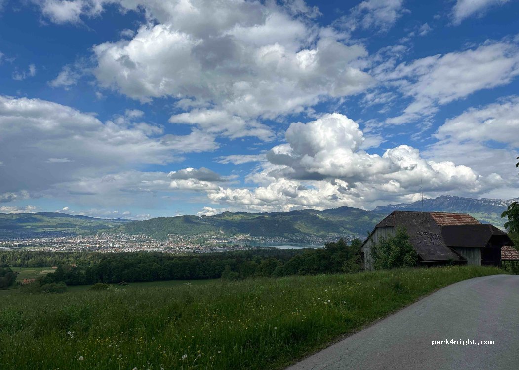 Local bem tranquilo, com uma vista magnifica sobre a cidade de Thun. O proprietário muito amável e prestável disponibilizou WC, água e eletricidade. Vale a pena.