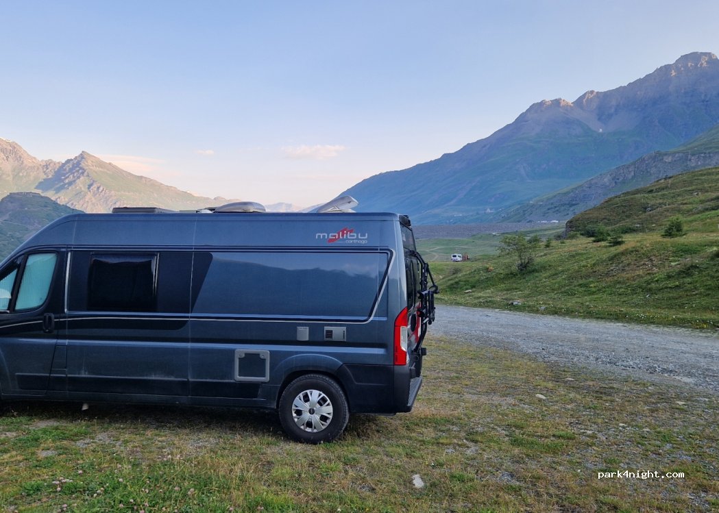 Belle pelouse avec vue sur le barrage et ses environs. le chemin est raide et non pavé, mais faisable avec un camping-car <3500 kg.