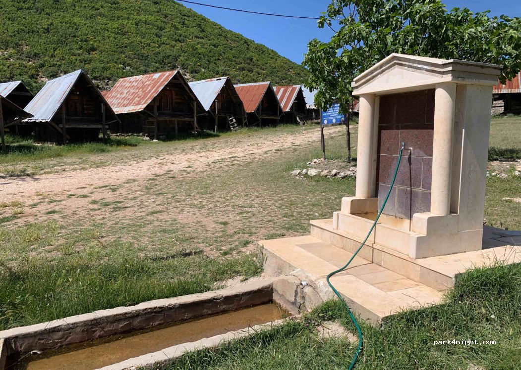 Très joli endroit, avec WC et eau tout proches (fontaine au bou du chemin à droite des cabanes). Très bonne réception 4g,emplacements plats sur erbe! Par contre on est très proches des maisons du village. Le boulanger passe en voiture en klaxonnant hésitez pas à l'arrêter si vous voulez du pain (1.5tl le pain)