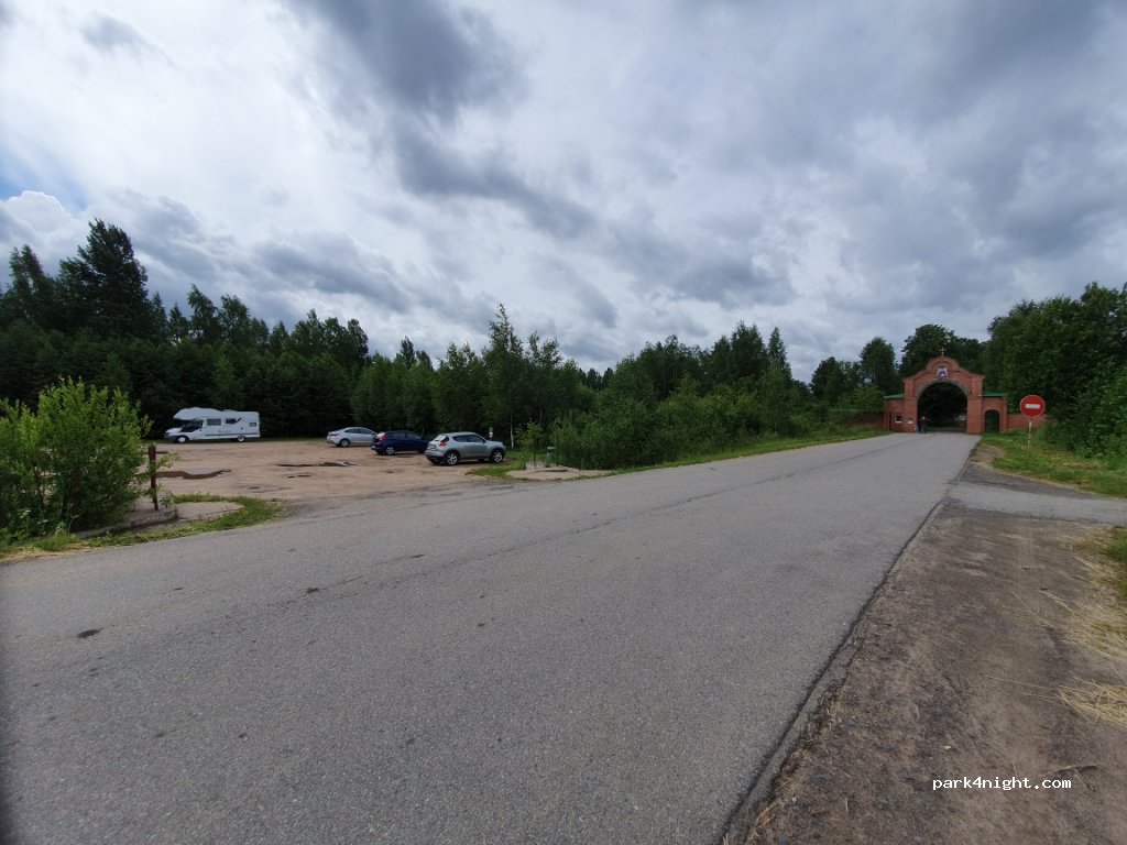 Parking du monastère à environ 2,5 km de la route A-114. Très calme toute la journée (mais pourrait être occupé pendant les grandes vacances orthodoxes). Comme la route ne mène qu'à cet endroit, nous supposons que c'est un endroit parfaitement sûr pour passer une nuit. Il y a un chemin vers le lac à travers le territoire du monastère, donc si vous souhaitez vous baigner, nous vous recommandons de vous habiller modestement. De plus, le monastère dispose de WC que nous n'avons pas vérifié. Il y a probablement de l'eau de source potable comme dans la plupart des monastères orthodoxes, mais nous n'avons pas demandé aussi.