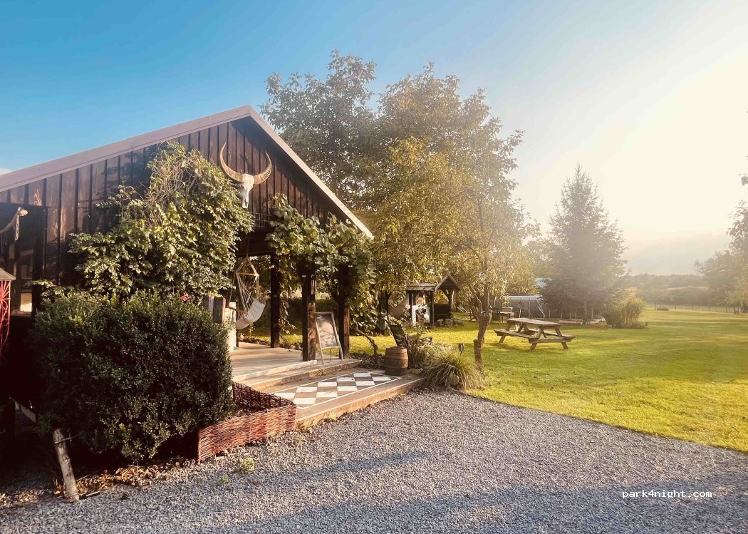 We came for 1 night and stayed 3. Beautiful campsite in a rural area, lovely views, very peaceful. Modern clean facilities include nice al fresco kitchen and games areas. Fire pits, hammocks and a pizza oven! Wonderful, helpful owners. They offer fresh eggs, ice cream, beer, wine for sale at good prices plus a vegetable and herb patch. Great stop on your journey, recommend a longer stay to relax!