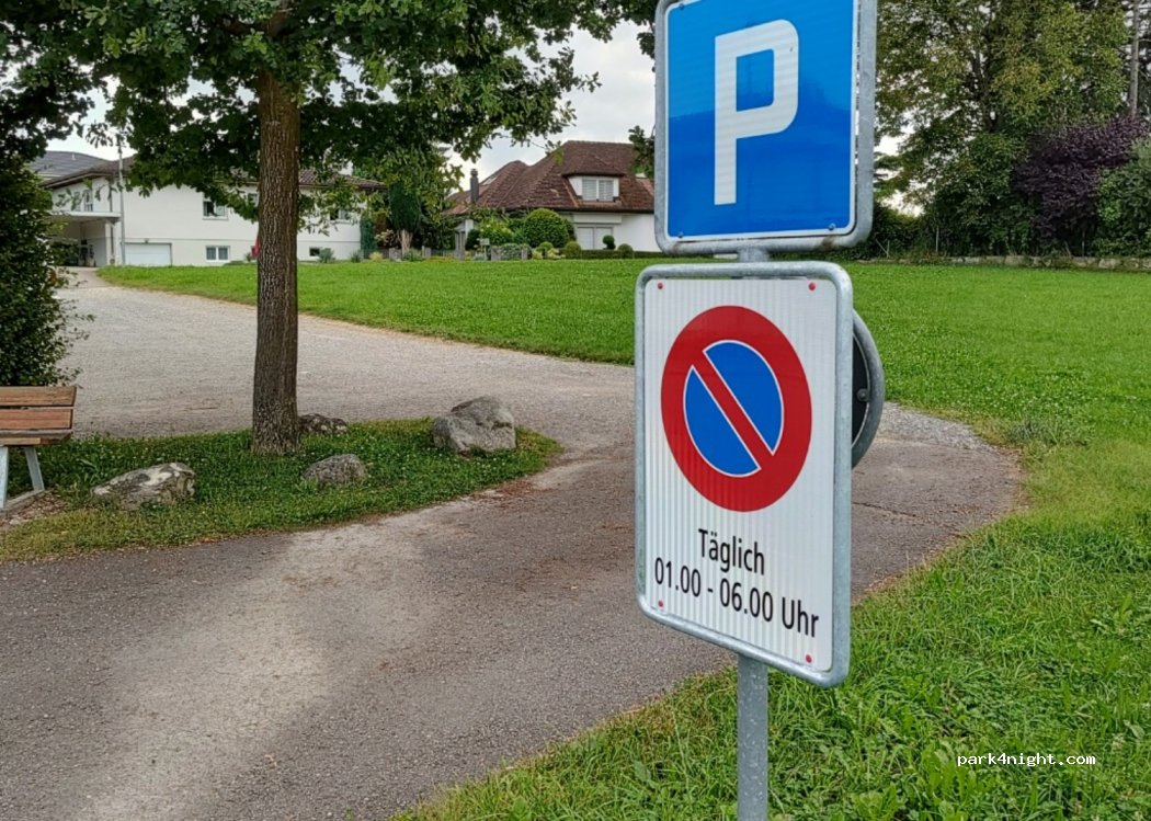 Parkverbot: Täglich 01.00 - 06.00 (neue Tafel). Klassischer Parkplatz für Spaziergänger und "Hündeler" jedoch von den angrenzenden Nachbarhäuser gut einsehbar. Daher nun auch die neue Verbotstafel.