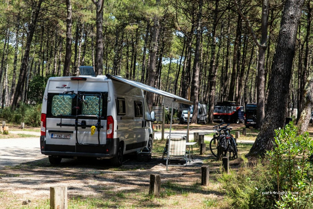 Très grand camping mais nuit calme sous les pins malgré la densité et une soirée de finale de l’Euro 2020. Emplacement avec ou sans électricité pour van et CC. Nombreux sanitaires propres mais pas mal de sable au sol. Nombreux services (lessive, évier dédié à la vaisselle, service petit-déjeuner, aire de jeux pour enfants, petite piscine, vente à emporter…) Accès codé direct à la plage du Vivier pour par exemple y admirer le coucher du soleil. Bien situé pour rayonner dans la région.