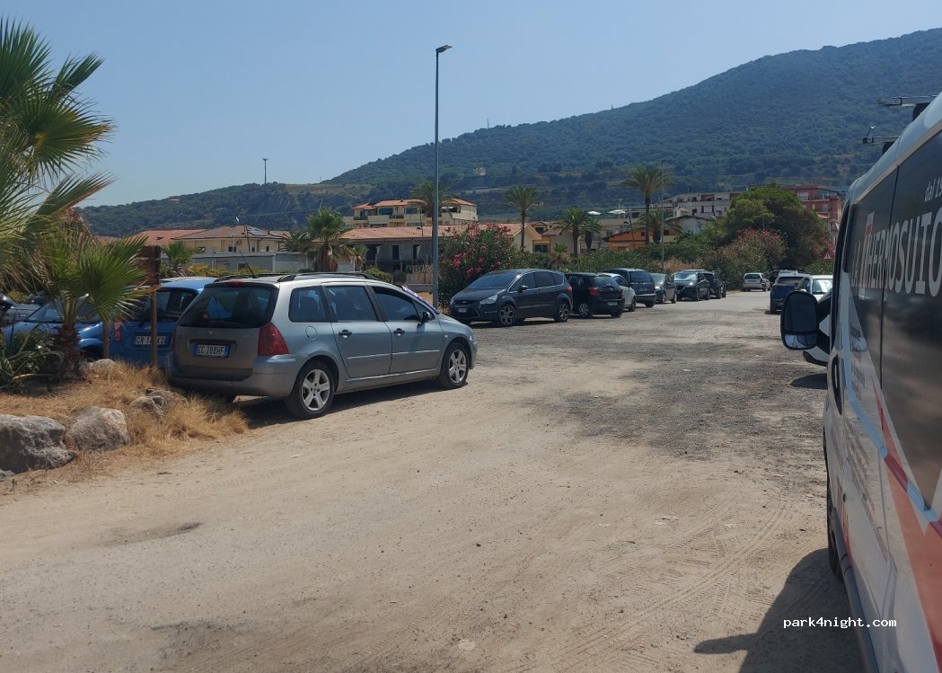 Buon parcheggio fuori stagione, abbiamo trascorso una notte in piena tranquillità poiché il ristorante attiguo ora è chiuso. Peccato ci sia un pò di sporcizia sulla bella spiaggia. Bellissimo tramonto con vista di Stromboli all'orizzonte. La fontanella in zona eroga acqua con bassa pressione.