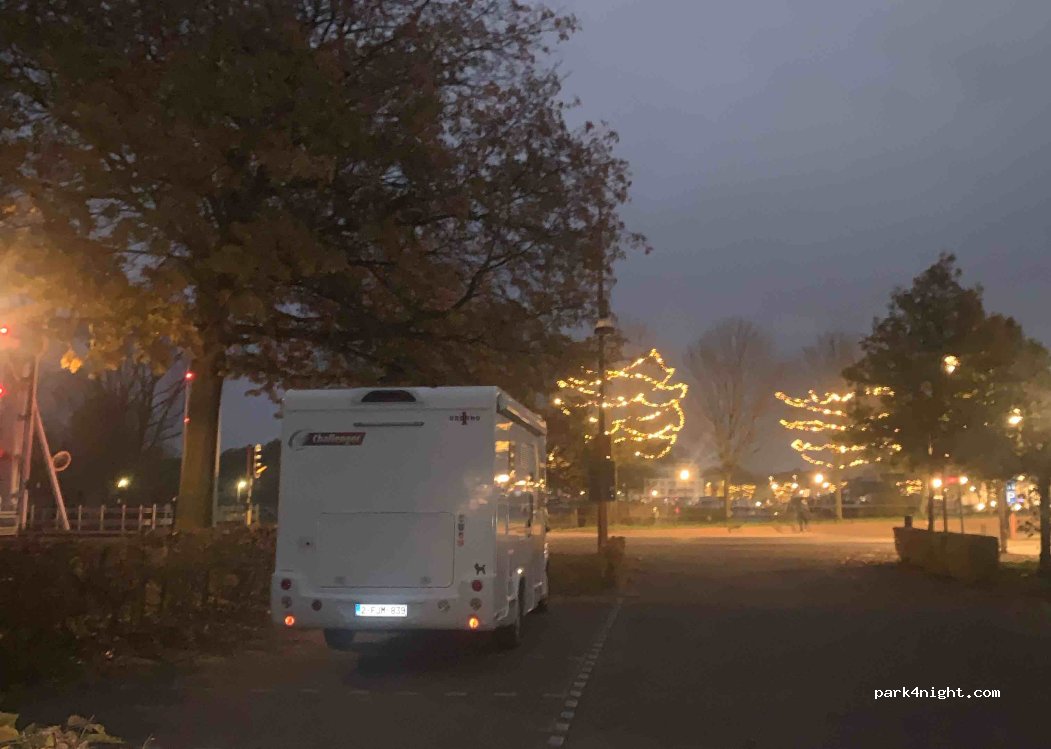 Well situated, next to the canal and the bridge that opens for the boats to pass. we arrived and there was a festival on which was fab. 20 min walk to the town centre. motorhomes Park in the fsint yellow boxes across the white lines. only 4 spaces. Well worth it.