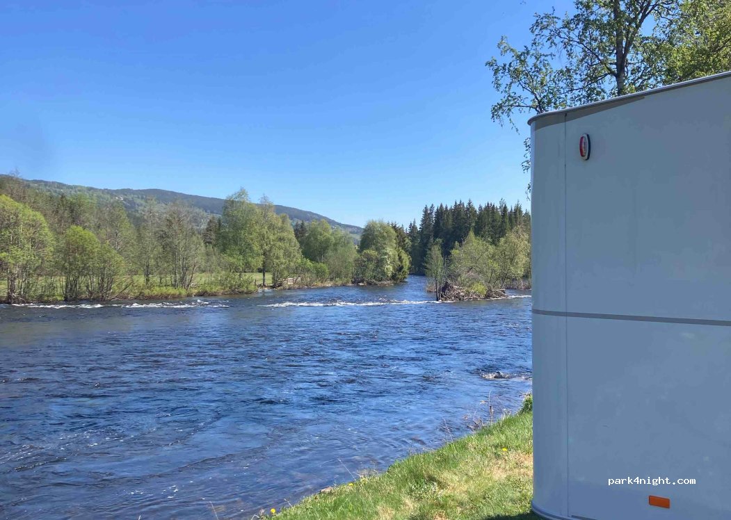 Ein sehr schöner Platz mit freier Platzwahl, direkt am Wasser. Das rauschen des Wasserfalls hört man nachts nur sehr leise, wir haben sehr ruhig geschlafen. Große saubere Sanitäranlage, die Dusche kostet Geld. Wir bezahlten für eine Nacht ohne Strom 300 NOK. Entsorgung und Versorgung ist möglich.