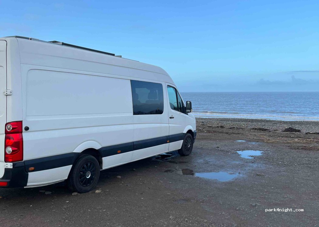 Wow, lovely place to stop, if the weather was fine the beach on the doorstep, parked up for hour or so the gale hit salty sea water being blown over the van, the wind was rocking the van so moved on to the road behind the bank adjacent to the marina, very quiet. Noticed no stopover signs in the area near the lock gates, lovely place to stop, definitely be going back during the summer months.