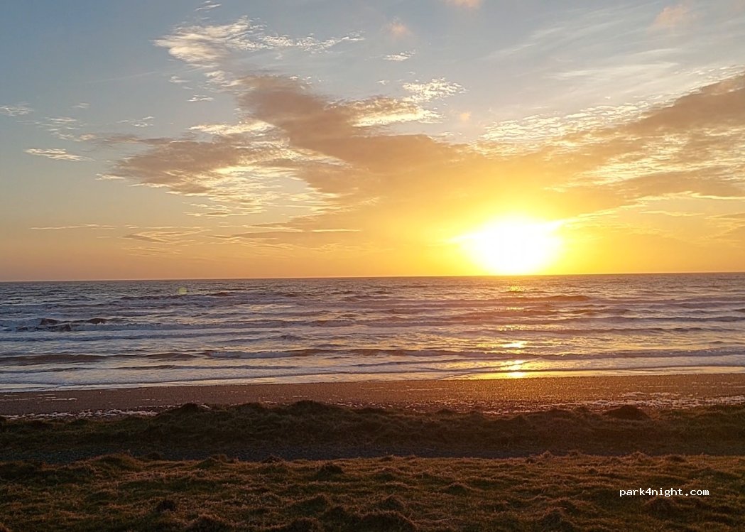 Wonderful place, practically on the beach and so calm & quiet. I spent the afternoon here, watched the sunset then found a nearby layby with no restrictions to sleep. I'll be going back this morning! good signal too.