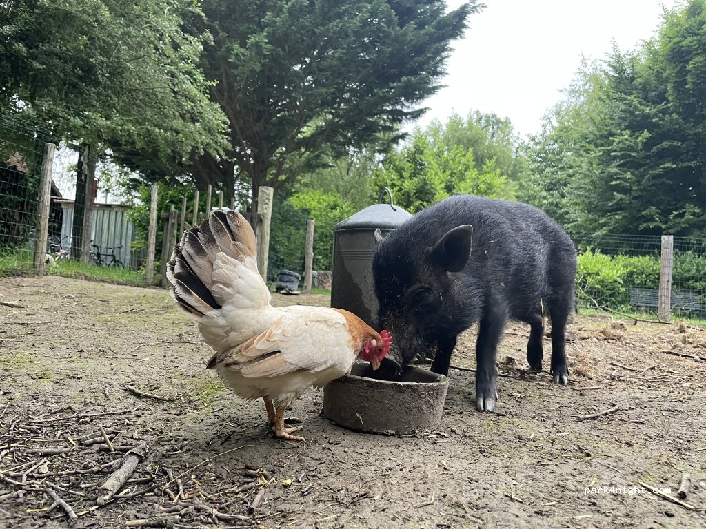Elke ochtend voeren we samen met de kinderen de dieren. En wanneer het weer het toelaat steken we regelmatig een kampvuurtje aan.