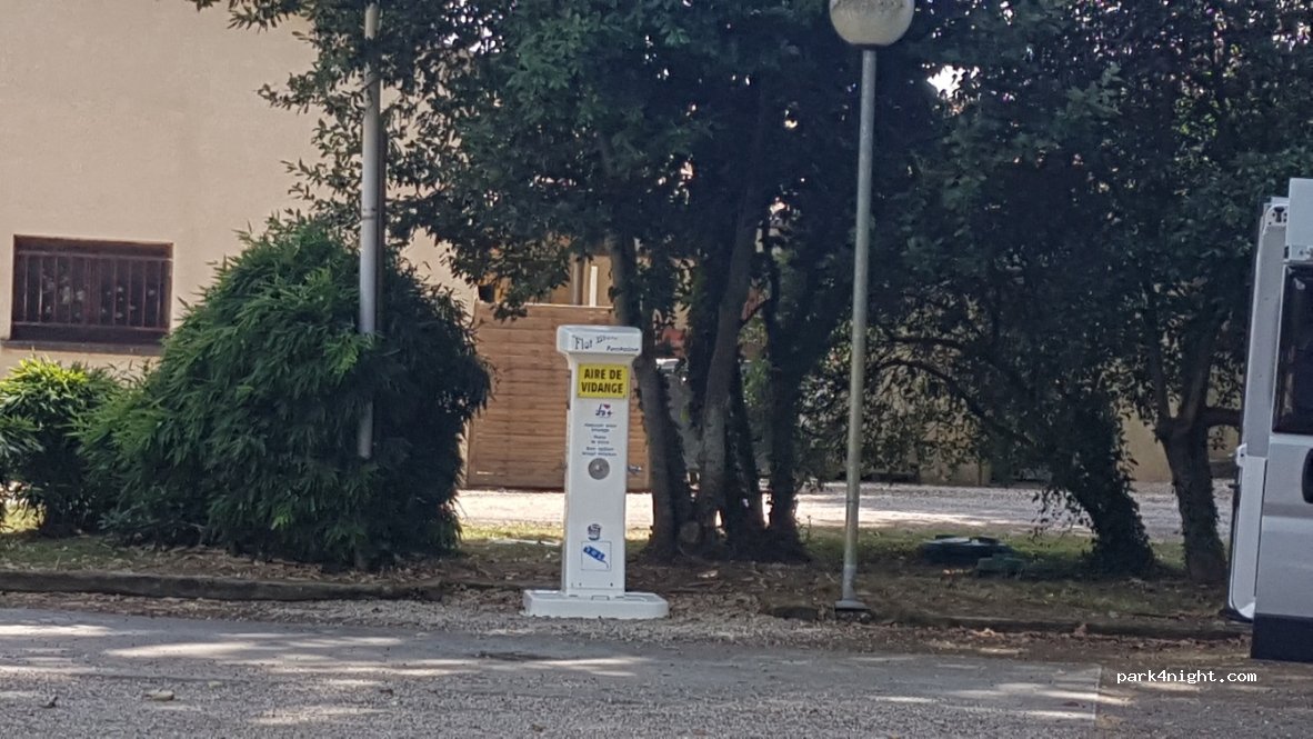 Dommage, ce pourrait être un bel endroit. L'aire de vidange n'a pas d'eau, elle est à demi recouverte de déchets végétaux. L'affichage des tarifs date de 2018, un passage en vigilance pour orages forts du 14 août 2023. Le tout à proximité de la mairie. Une impression d'abandon.Sommes allés plus loin.