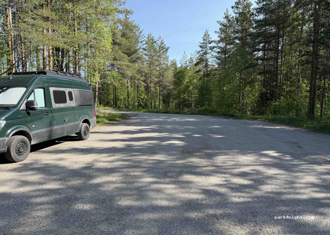 Legalny i oznaczony parking leśny przy lokalnej drodze z bardzo małym ruchem. Nocowaliśmy tutaj, bardzo spokojnie i bezpiecznie.