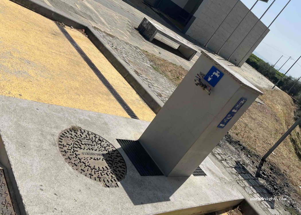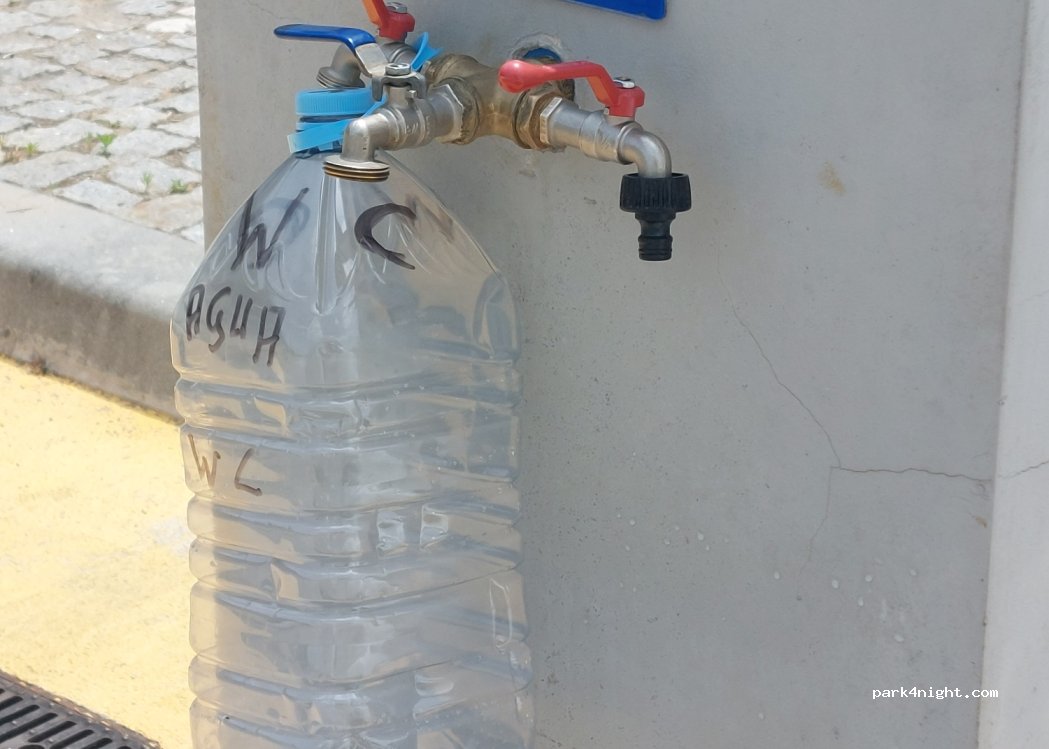 Área de troca de águas com todos os serviços a funcionar. Carece de contentor para lixo, uma vez que tem condições para pernoitar.