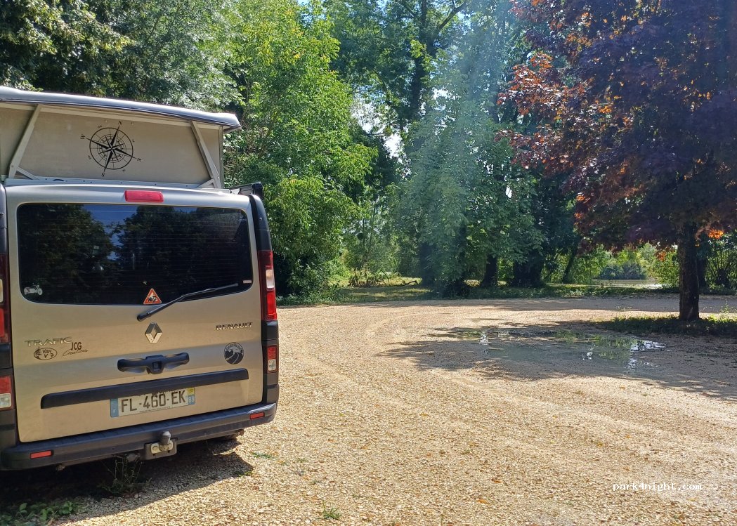 Great park up 15mins from Chateauroux. Drive down the lane before the lay-by, drive to the end and there’s firm ground with parking for 10 or more vans. Right next to the pond/lake.