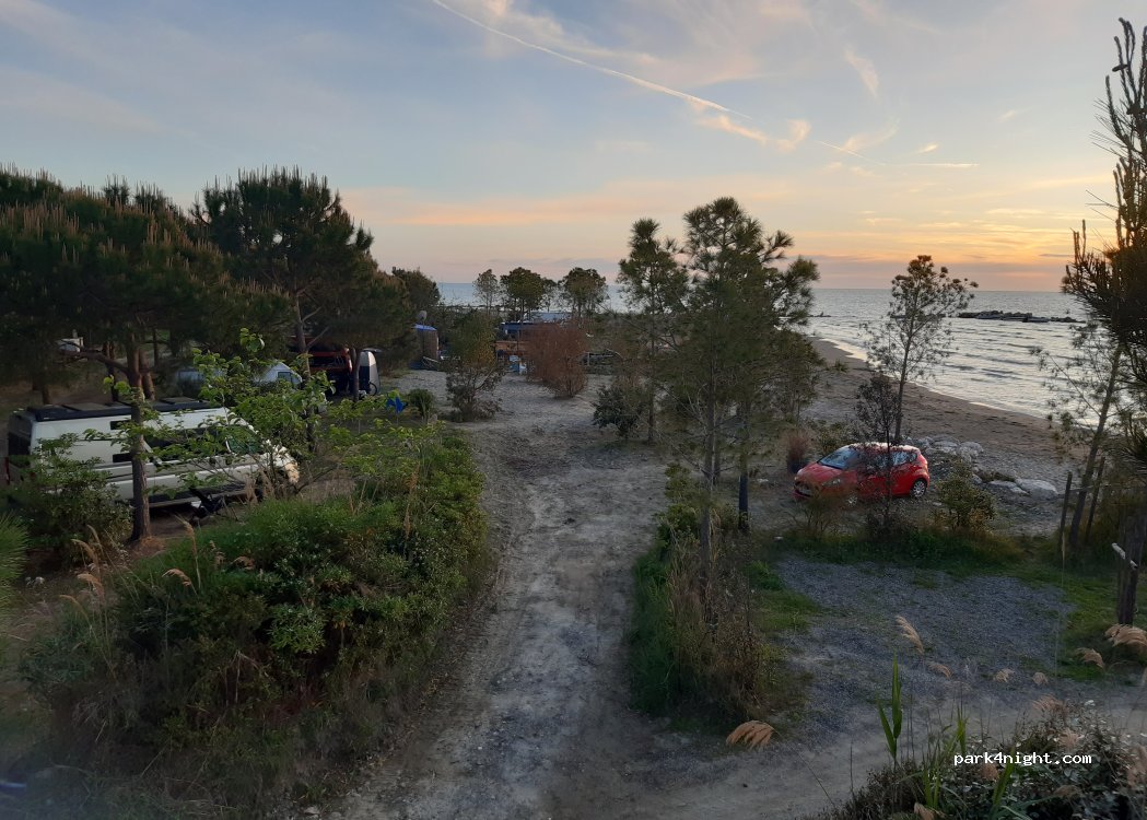 Camping in un posto meraviglioso parcheggio direttamente sul mare, un po’ wild. Servizi sufficienti a volte un po’ scomodi. Il prezzo buono € 28 più 1€ per il cane