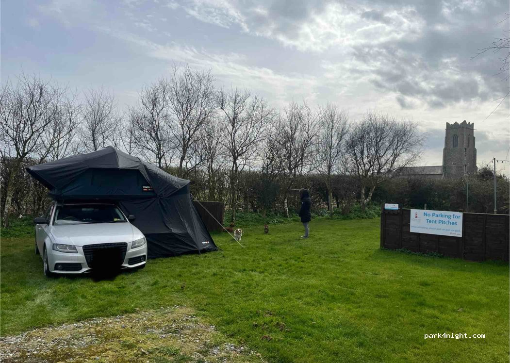Fantastic little site, within easy reach of the sea front (10min walk), very dog friendly, the site managers are very friendly and helpful. Heated wash facilities, £25 for ehu and water tent pitch for the night.