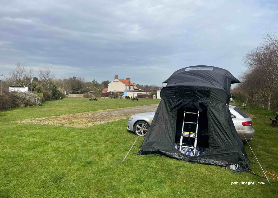 Great roll up location. Caravan and camping club site on right of pub, roll up area on left of pub. We were able to use all the campsite facilities (showers, toilet disposal etc). Bargain at £10!
