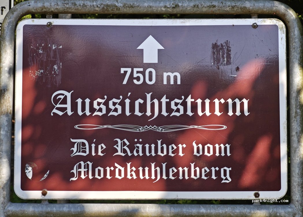 Der Parkplatz wird sehr viel von Spaziergängern genutzt, aber nachts ist es sehr ruhig, auch auf der Straße. Er ist ein bisschen schräg und an den Rändern auch ein bisschen schmuddelig. Es gibt einen großen Mülleimer. Die kurze Wanderung zum Aussichtsturm (inklusive lokaler Räubergeschichte) fand ich lohnenswert.