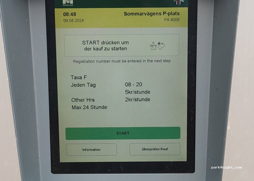 Estacionamiento teóricamente limitado a 4 horas, sin parkimetro ni nada. Nosotros pernoctamos sin problemas. Por la mañana nos acercamos a Malmö centro en bicicletas, y volvimos a las 13 para comer. Sin problemas y aparentemente sin control. Los parkings de pago SI están controlados.