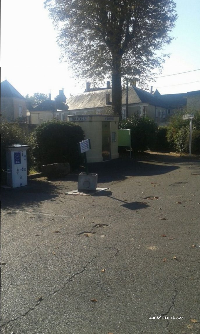 Grand parking au bord de la rue très passante. Beaucoup de va-et-vient de camions. Pas de borne et vidange impossible. Pour stationner à deux pas du château du Lude.