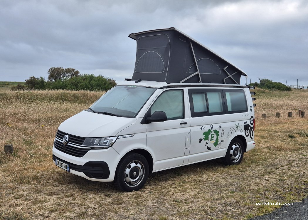 Parfait emplacement pour les amoureux de la nature et du calme. Nous nous sommes garé face au chemin de 50 m qui mène directement à la plage. Nous étions sur le bord de la petite route mais étant une impasse, il n'y a que très peu de passage le soir. Nous avons été bercé par le bruit de la mer. Je recommande !