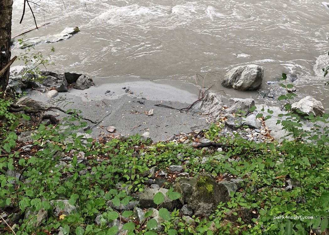 Le bruit de la rivière est un délice nous avons passés la nuit sur ce parking certes la route est proche mais garer le long de la rivière le bruit est minime