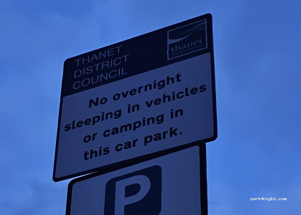 signs now saying no sleeping or camping overnight. Such a shame .Bays empty, your loss thanet council!